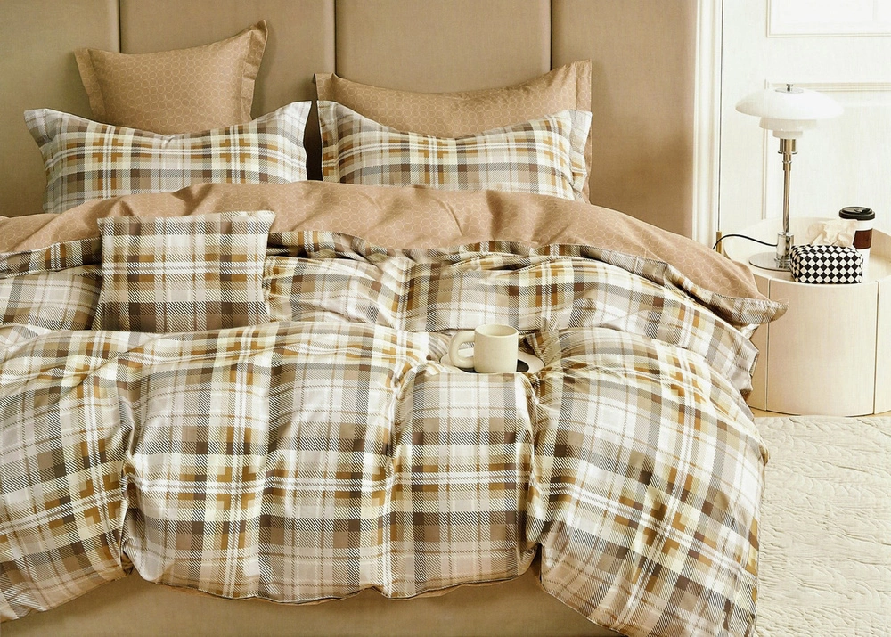 - Pościel 160x200 cm nr A1760 w odcieniach beżu z satyny bawełnianej. Zamek błyskawiczny. Zestaw 3 części: poszwa 160x200 cm oraz 2 poszewki 70x80 cm. Gramatura 110 g/m². Elegancka i komfortowa.