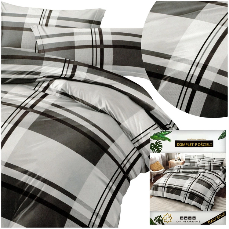 Pościel w kratkę 160 x 200 3cz Satynowa Dalwin 1041