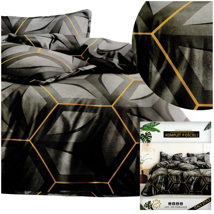 - Pościel Dalwin 1019 w odcieniach szarości i czerni, wykonana z miękkiej satyny bawełnianej. Zestaw 3 części (poszwa 160x200 cm, poszewki 70x80 cm) z wygodnym zamkiem błyskawicznym. Elegancki design pasujący do nowoczesnych wnętrz.