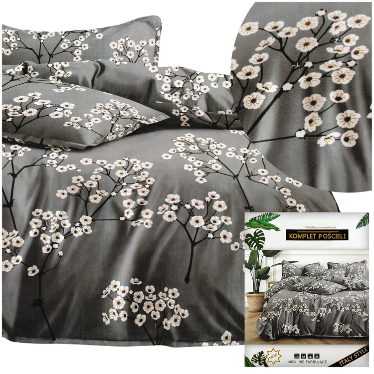 - Ekskluzywna pościel satynowa Dalwin 1028 marki Łóżkoholicy w odcieniach bieli, szarości i srebra. Wykonana z wysokiej jakości satyny bawełnianej (gramatura 75 g/m²), jest miękka i elegancka. Zestaw 3-częściowy z zamkiem błyskawicznym. Rozmiar: 160x200 cm.