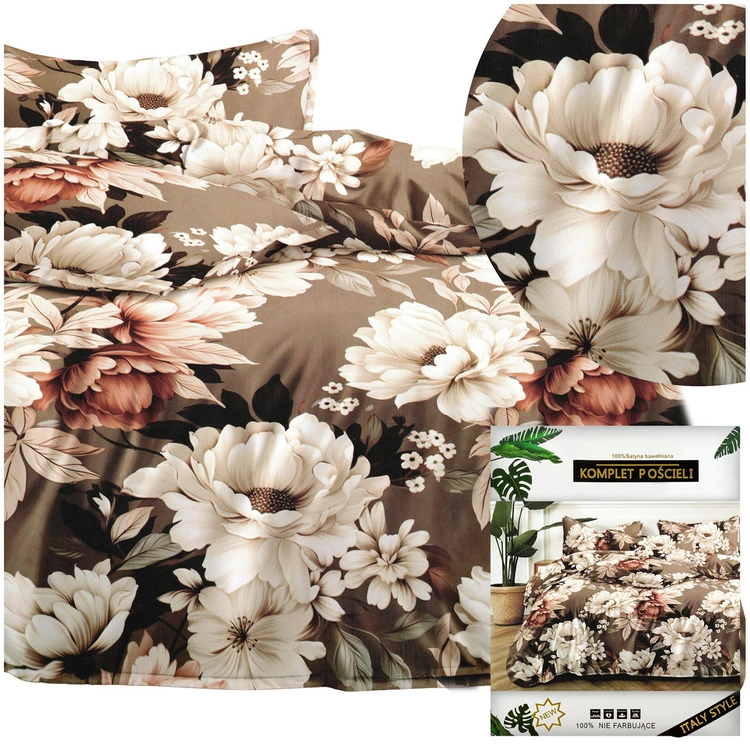 Pościel w kwiaty 160 x 200 3cz Satynowa Dalwin 1023