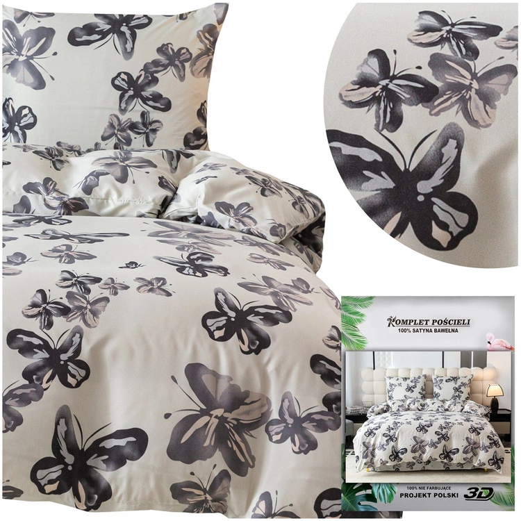 Pościel w motylki 200 x 220 3cz Satynowa Maria 2767