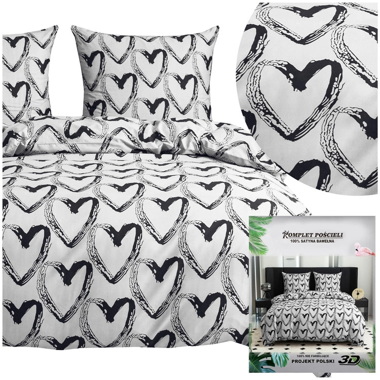Pościel w serduszka 160 x 200 3cz Satynowa Maria 2777