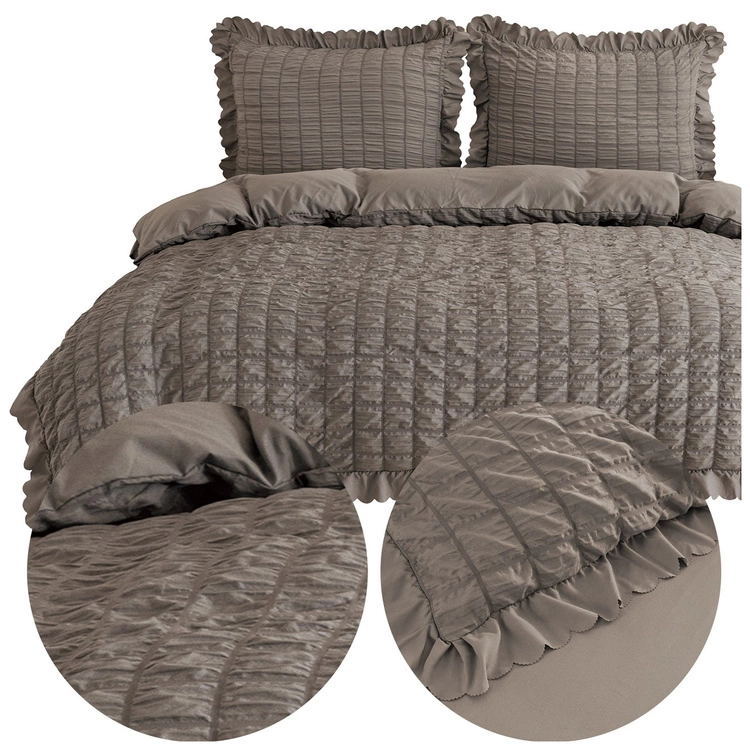 Pościel z kory z falbaną beżowa 160 x 200 3cz Gavin 02