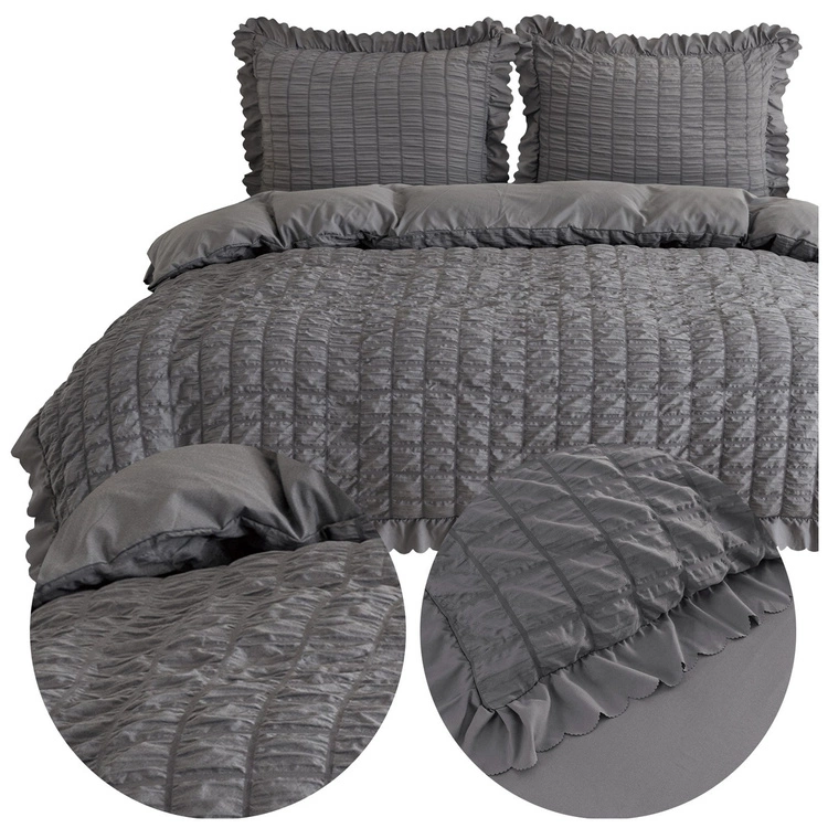 - Pościel Kora Z Falbaną Gavin 03 220x200 cm w odcieniach szarości, wykonana z mikrofibry, z zamkiem błyskawicznym. Zestaw 3-elementowy, elegancki i wygodny, idealny do każdej sypialni.