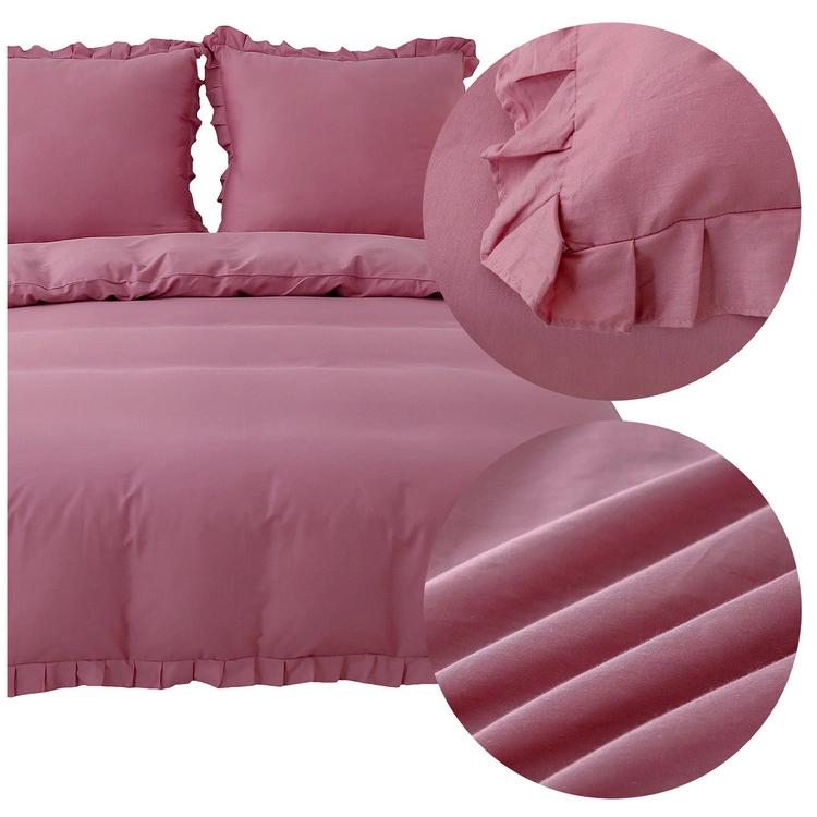 - Pościel Bawełniana z Falbaną Lynda 05, 220x200 cm, 3 części, bawełna, zamek błyskawiczny, odcienie różowego.