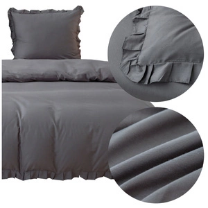 - Pościel Bawełniana z Falbaną Lynda 04, 140x200 cm, 2 części, bawełna, zamek błyskawiczny, odcienie szarości i srebrnego.