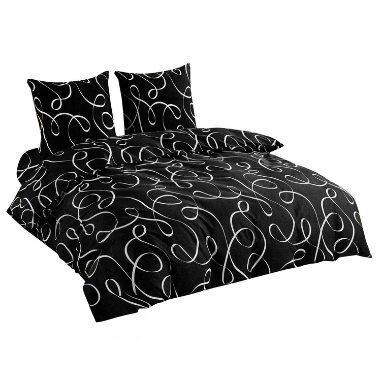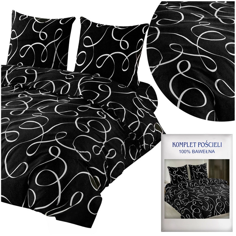 Zestaw zawiera trzy elementy: poszwę na kołdrę o wymiarach 160x200 cm oraz dwie poszewki na poduszki (70x80 cm). Dzięki zamkowi błyskawicznemu, zakładanie pościeli jest szybkie i wygodne. Czarne odcienie tej pościeli nadają jej eleganckiego, nowoczesnego wyglądu, idealnego dla osób, które cenią klasykę w nowoczesnym wydaniu.