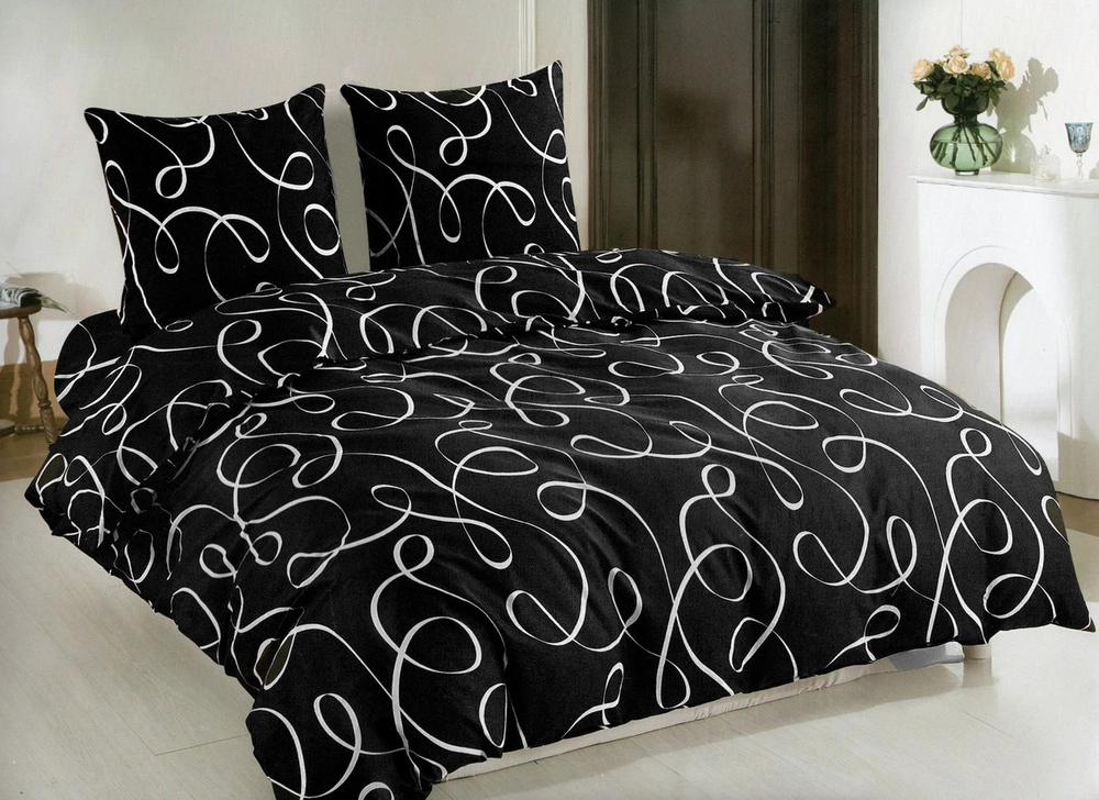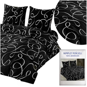 - Pościel satynowa bawełniana 160x200 cm nr A1855 w odcieniach czerni, 3 części (poszwa 160x200 cm, 2 poszewki 70x80 cm), z zamkiem błyskawicznym.