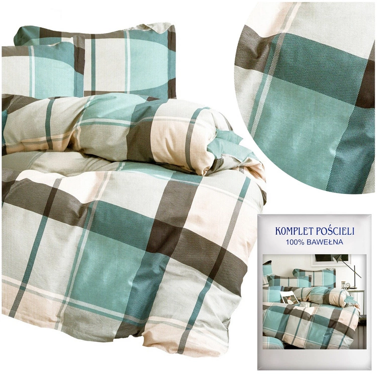 Pościel w kratkę 200 x 220 3cz Satyna Bawełniana nr A1869