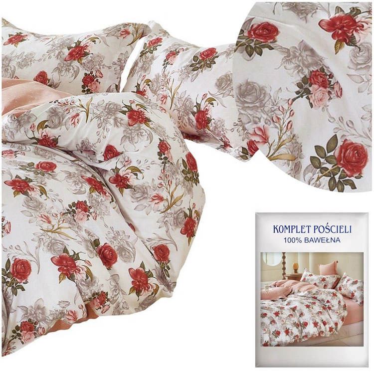 Pościel w róże 200 x 220 3cz Satyna Bawełniana nr A1854