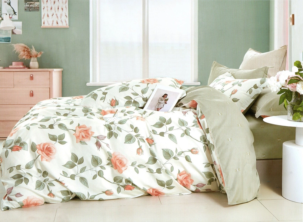 Pościel w róże 160 x 200 3cz Satyna Bawełniana nr A1741