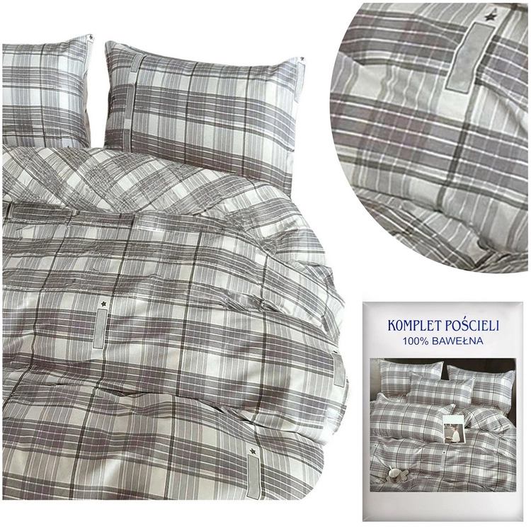 Pościel w kratkę 160 x 200 3cz Satyna Bawełniana nr A1860