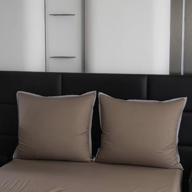 - Pościel Gładka Z Koronką Brandon 160x200 cm w odcieniach brązu. Zestaw 3 części wykonany z mikrofibry z koronkowym detalem i zamkiem błyskawicznym.