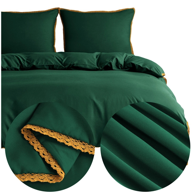 • Pościel Gładka Z Koronką Brandon 160x200 cm w odcieniach zieleni. Zestaw 3 części wykonany z mikrofibry z koronkowym detalem i zamkiem błyskawicznym.
