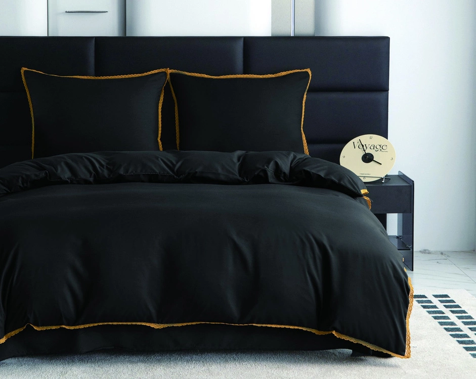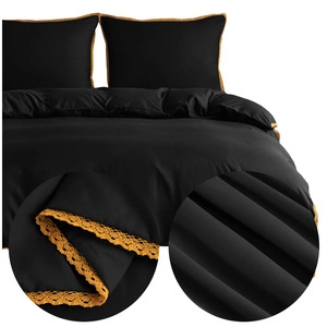 - Pościel Gładka Z Koronką Brandon 160x200 cm w odcieniach czarnego. Zestaw 3 części z mikrofibry, ozdobiony koronką i zamkiem błyskawicznym.