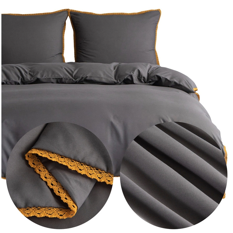 • Pościel Gładka Z Koronką Brandon 160x200 cm w odcieniach szarości i srebra. Elegancki zestaw 3 części z mikrofibry, ozdobiony koronką i zamkiem błyskawicznym.