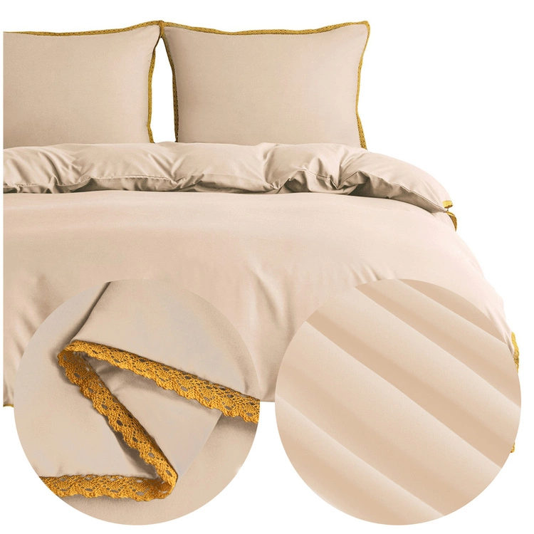 - Pościel Gładka Z Koronką Brandon w odcieniach beżu, rozmiar 200x220 cm, zestaw 3 części, wykonana z mikrofibry, z zamkiem błyskawicznym.