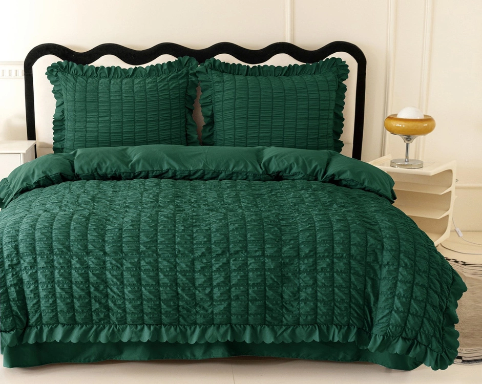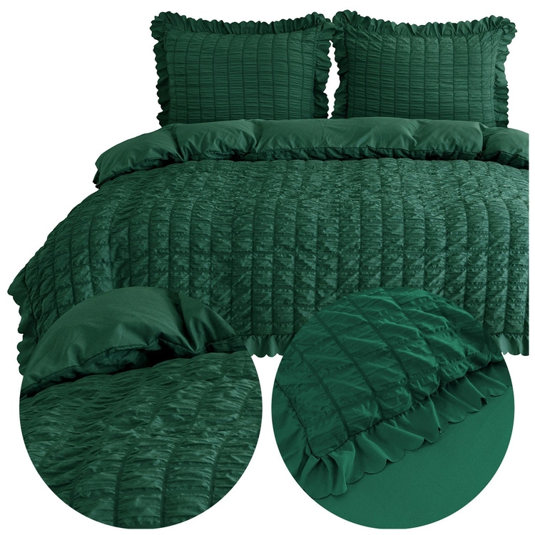Pościel z kory z falbaną zielona 160 x 200 3cz Gavin 06
