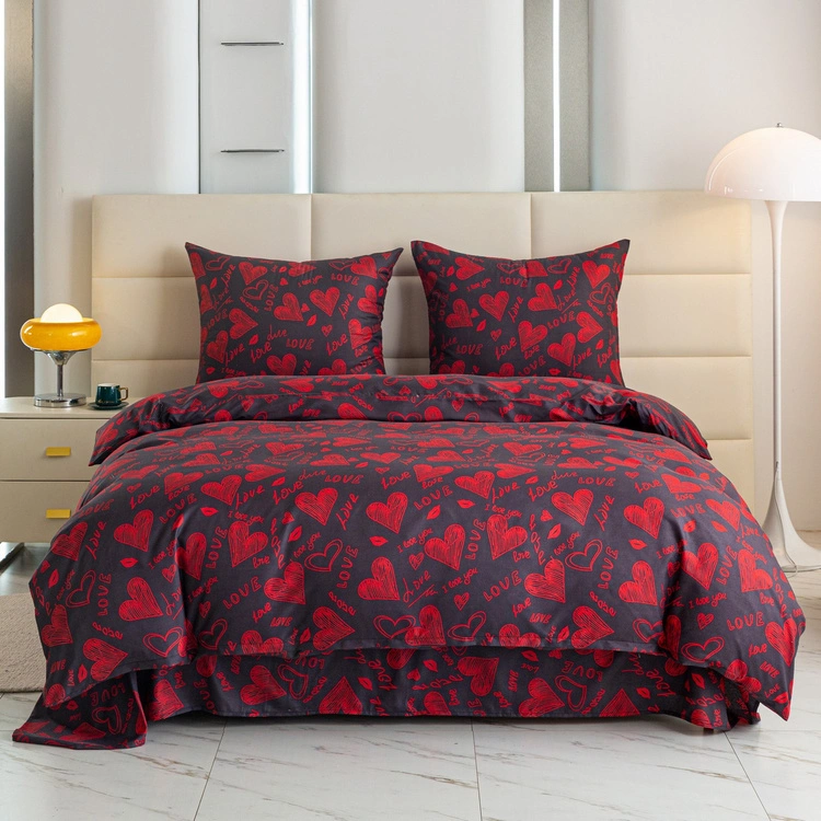 Pościel w czerwone serca 160 x 200 3cz Satynowa Maria 3017
