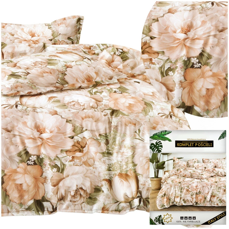 Pościel w kwiaty 200 x 220 3cz Satynowa Dalwin 1064