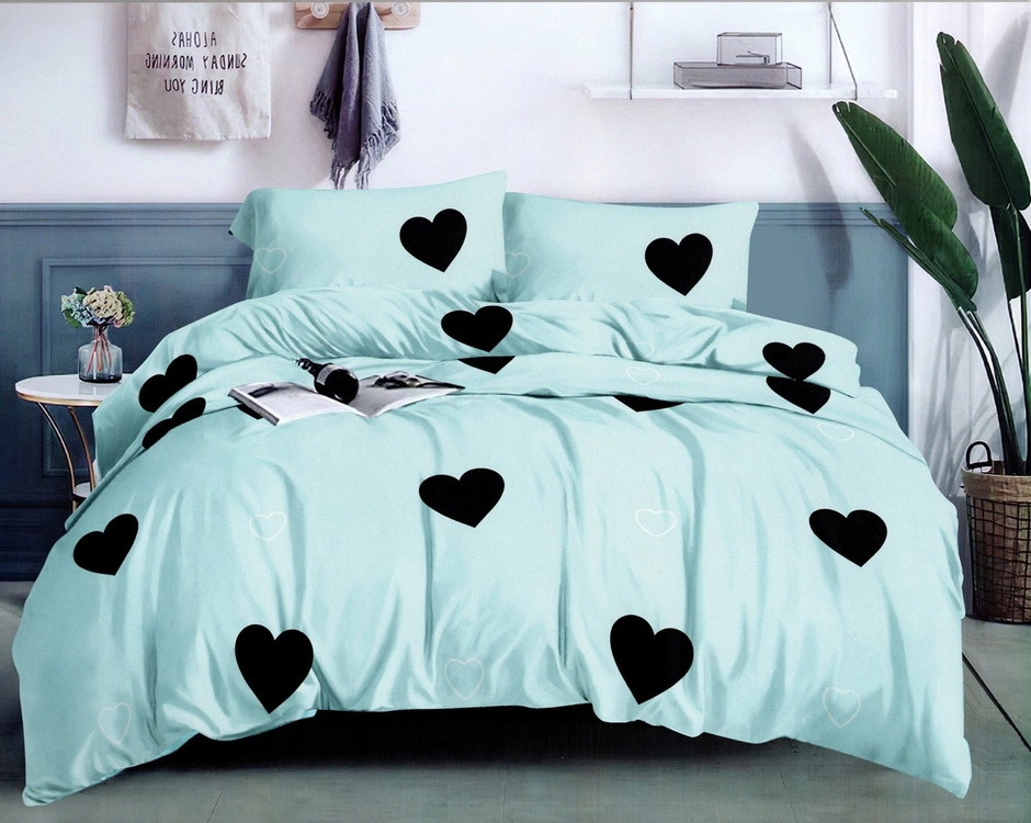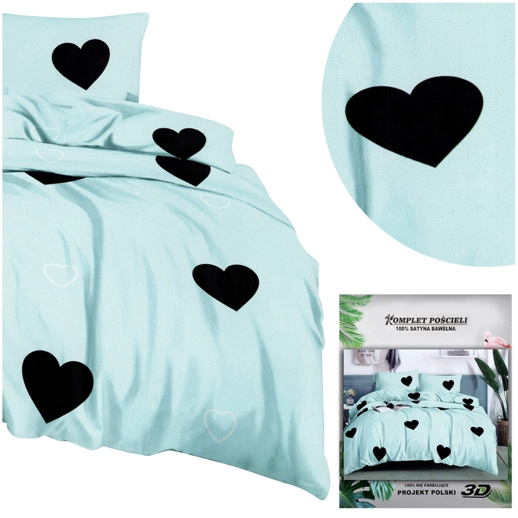 Pościel w czarne serca 200 x 220 3cz Satynowa Maria 1173