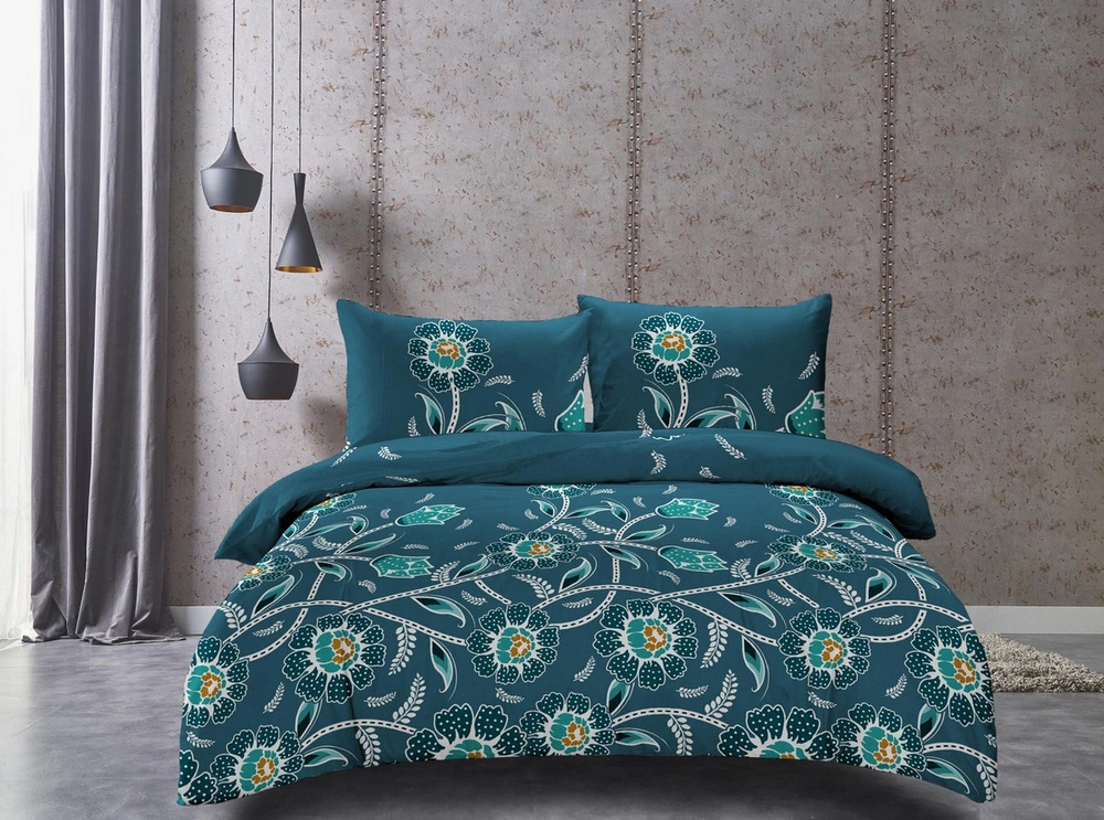 - Pościel Satynowa Maria 2330-1 w rozmiarze 200x220 cm, w odcieniach niebieskiego. Wykonana z satyny bawełnianej (gramatura 75 g/m²) z zamkiem błyskawicznym. Zestaw 3 części: poszwa 200x220 cm i dwie poszewki 70x80 cm.