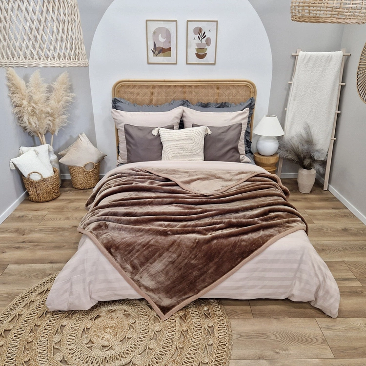 Akrylowy Ciepły Koc Yasemin 04 ciemny beżowy o wymiarach 200x220
