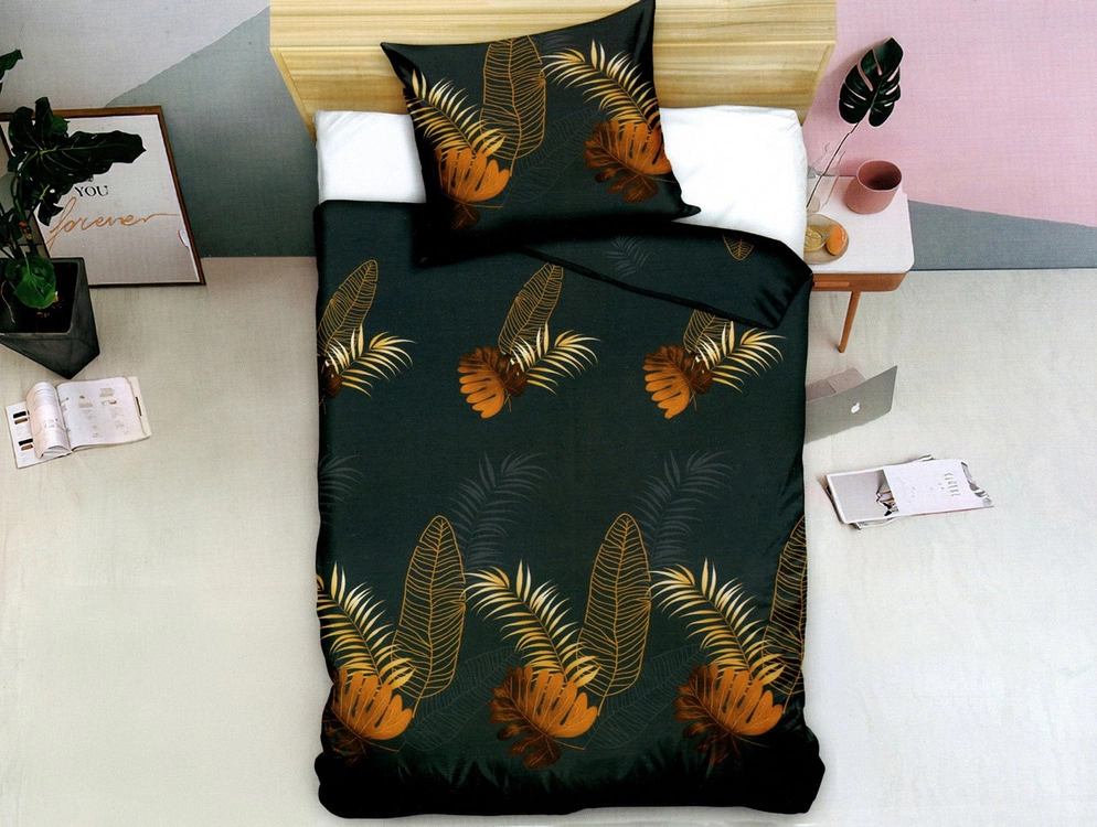 Pościel w złote liście 140 x 200 2cz Satynowa Dalwin 930