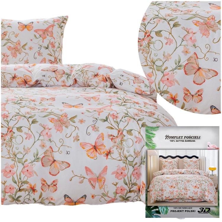 Pościel w pomarańczowe motylki 140 x 200 2cz Satynowa Maria 3053