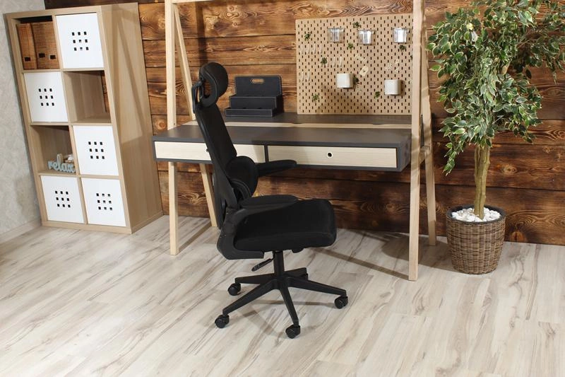 Fotel obrotowy NOVA w kolorze czarnym to elegancka i ergonomiczna opcja, która doskonale sprawdzi się w biurze, pokoju młodzieżowym czy przestrzeni domowej. Dzięki zastosowanemu mechanizmowi TILT, fotel oferuje możliwość delikatnego bujania, co zwiększa komfort pracy lub odpoczynku. Regulowane podłokietniki (67-77 cm) oraz możliwość zmiany wysokości siedziska (49-59 cm) pozwalają na pełną personalizację fotela, dostosowując go do indywidualnych potrzeb użytkownika. Tapicerka z tkaniny membranowej i siatki zapewnia wygodę i wentylację, a trwała podstawa z tworzywa PP w kolorze czarnym dopełnia nowoczesny design. Fotel NOVA to połączenie funkcjonalności, stylu i komfortu.