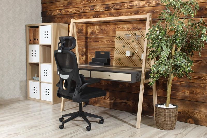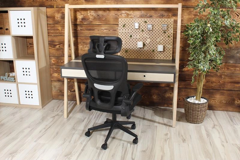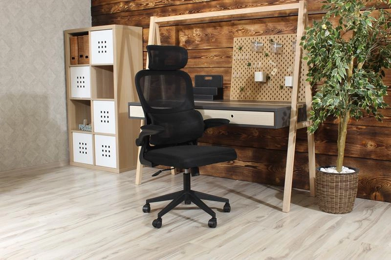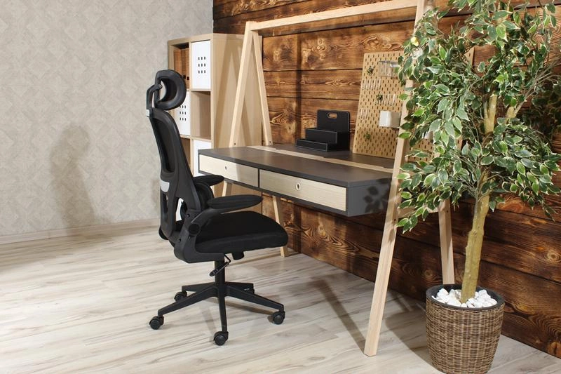 Fotel obrotowy NOVA czarny z regulacją TILT i składanymi podłokietnikami