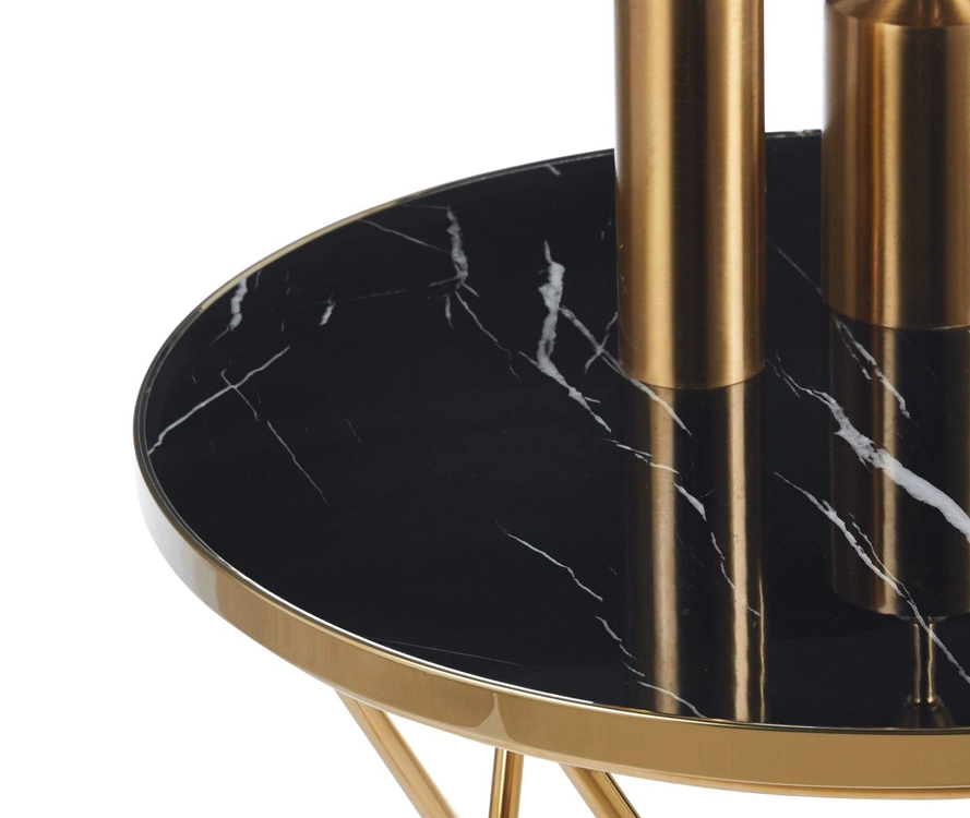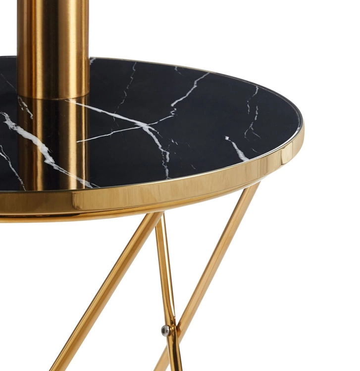 Stylowa ława PERLA 50 z czarnym marmurowym okrągłym blatem i złotą podstawą