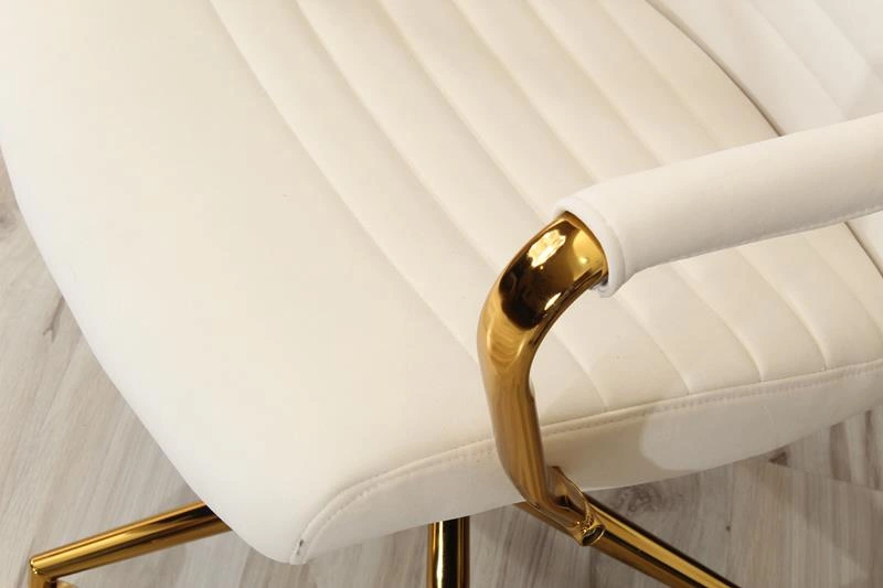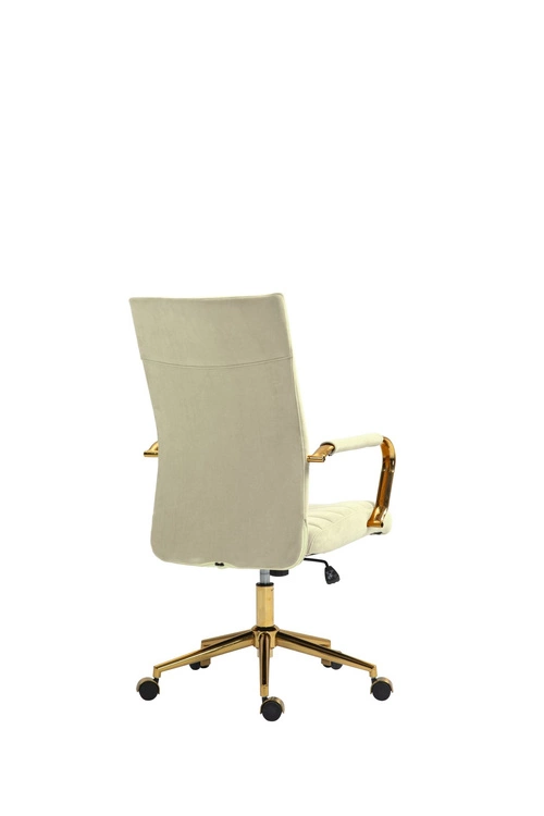 Welurowy fotel biurowy DORIAN kremowy na złotym stelażu