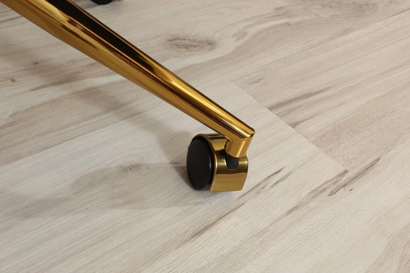 Fotel biurowy DORIAN to połączenie elegancji i komfortu. Jego beżowa tapicerka z tkaniny velvet oraz złoty stelaż nadają mu wyjątkowego charakteru, który wpasuje się w każde biuro czy gabinet. Stałe podłokietniki zapewniają wygodę podczas pracy, a mechanizm TILT umożliwia regulację wysokości oraz funkcję bujania, dostosowując fotel do indywidualnych potrzeb użytkownika. Fotel wyróżnia się także prostym, ale nowoczesnym designem, który łączy estetykę z funkcjonalnością.