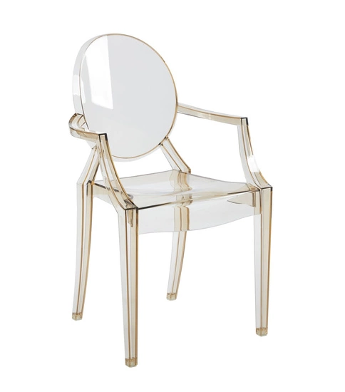 - Bursztynowe krzesło VERA z podłokietnikami wykonane z poliwęglanu. Wysoka jakość materiału i minimalistyczny design, który doskonale wkomponuje się w nowoczesne wnętrza. Komfortowe siedzisko i elegancka forma.