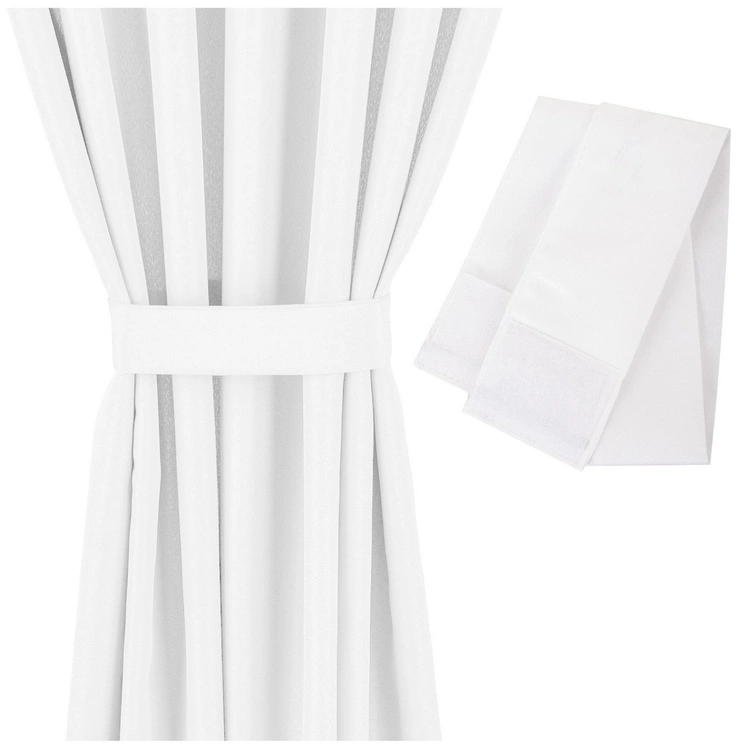 Wygodne upięcie: pasek/szelka z rzepem (ok. 70 cm długości, 6 cm szerokości) umożliwia praktyczne spięcie zasłony, regulację poziomu światła i estetyczne zabezpieczenie materiału przy silniejszym wietrze .