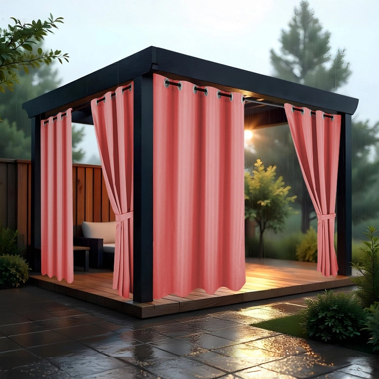 Dzięki systemowi zawieszenia na przelotkach lub kołach montaż jest szybki i prosty, co umożliwia łatwą zmianę zasłony w zależności od potrzeb. Zasłona w odcieniach różowego jest dostępna w różnych wariantach kolorystycznych, dzięki czemu można dopasować ją do stylu ogrodu czy tarasu.