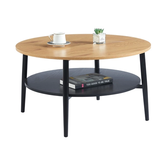 - Ława TORI o średnicy 80 cm i wysokości 45 cm w kolorze dębu naturalnego z czarną podstawą. Nowoczesny design z połączeniem ciepła drewna i eleganckiej czerni, idealna do minimalistycznych i stylowych wnętrz.