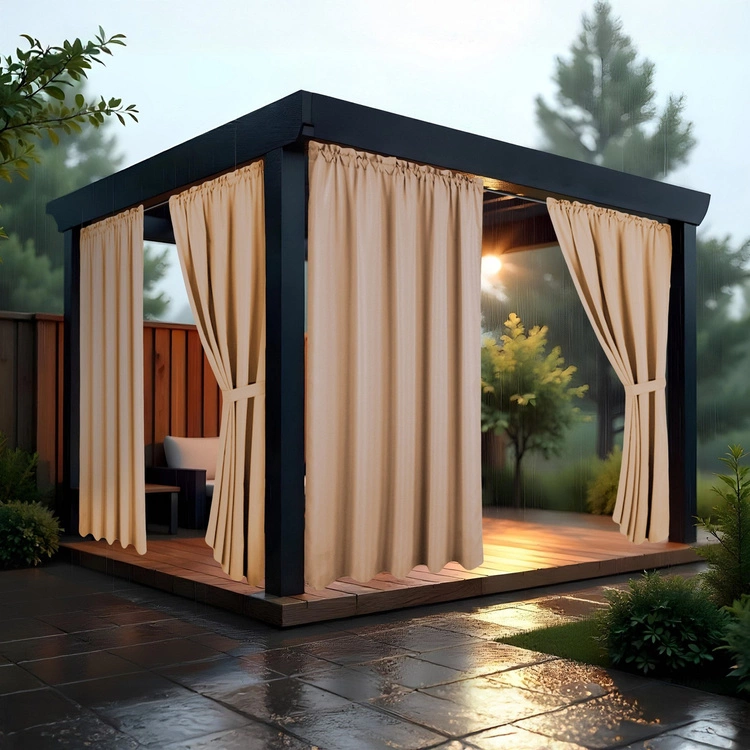 • Zasłona Ogrodowa Wodoodporna Rune A06 w odcieniach beżu to elegancka i funkcjonalna osłona do ogrodu. Wykonana z poliestru, zapewnia ochronę przed deszczem. Zawieszona na tunelu, idealna na taras, balkon lub do przestrzeni zewnętrznych.