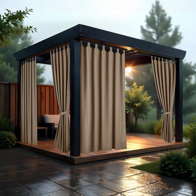 Ochrona na zewnątrz: dzięki wodoodpornej powłoce zasłona sprawdzi się niezawodnie w deszczowe dni, chroniąc przed wilgocią i wiatrem – idealna do ogrodu, na taras lub altanę