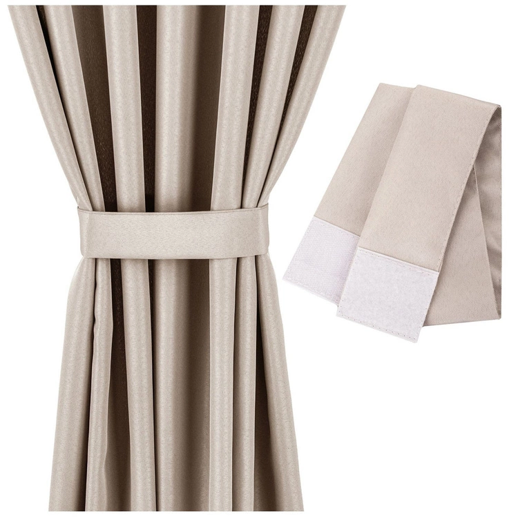 Wygodne upięcie: pasek/szelka z rzepem (ok. 70 cm długości, 6 cm szerokości) umożliwia praktyczne spięcie zasłony, regulację poziomu światła i estetyczne zabezpieczenie materiału przy silniejszym wietrze .