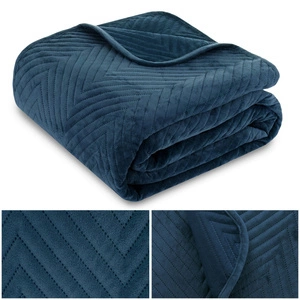Narzuta na łóżko z weluru CADEN 08 granatowa jodełka 200 x 220