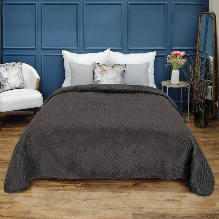 Welurowa narzuta na łóżko CADEN 03 grafitowa jodełka 70 x 160