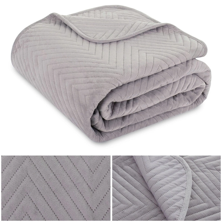 Welurowa narzuta na łóżko CADEN 02 jasnoszara jodełka 200 x 220
