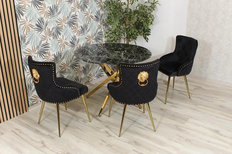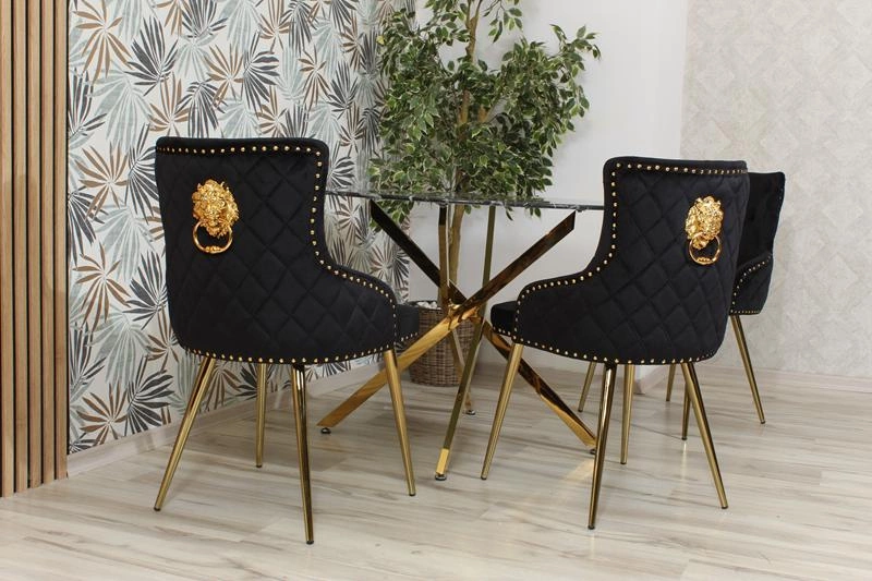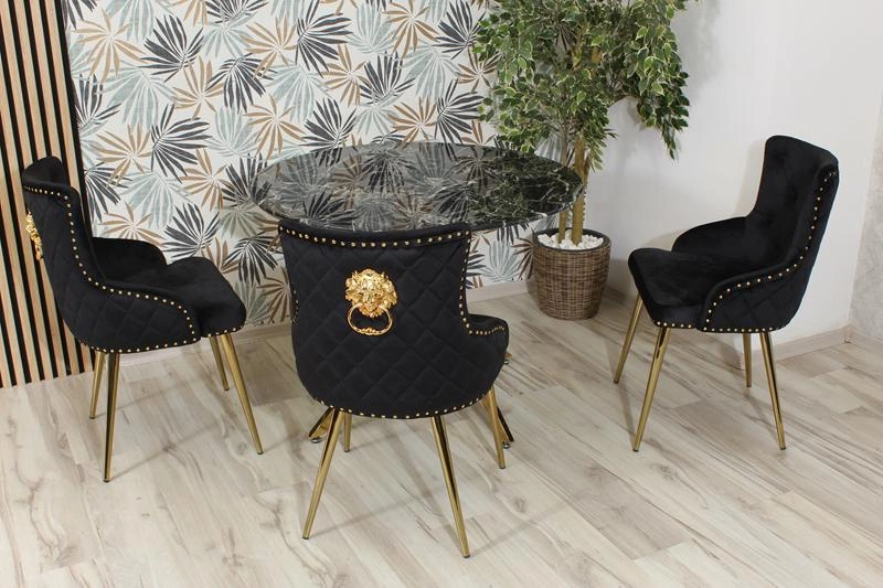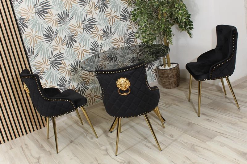 Krzesło z kołatką do jadalni glamour BENTO czarny/złoty