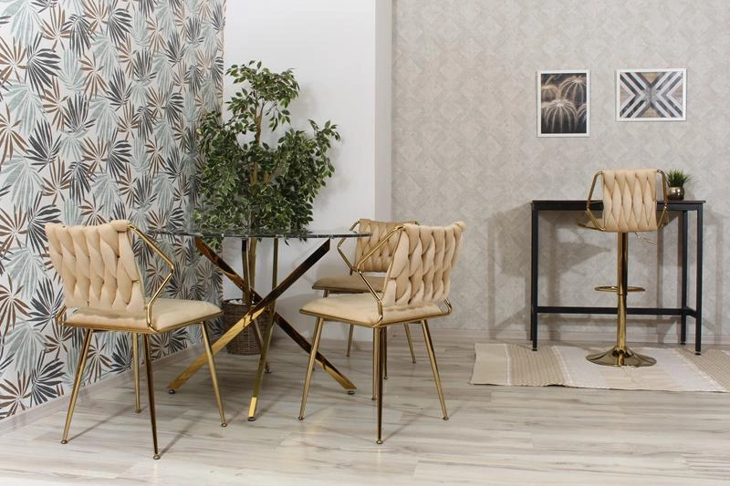 To krzesło doskonale pasuje do różnych przestrzeni: jadalni, biura, salonu, czy jako element wystroju wnętrz w stylu nowoczesnym, klasycznym lub glamour. Połączenie beżu z złotem sprawia, że krzesło ERGO wprowadza do pomieszczenia ciepło, elegancję oraz wyjątkowy klimat.