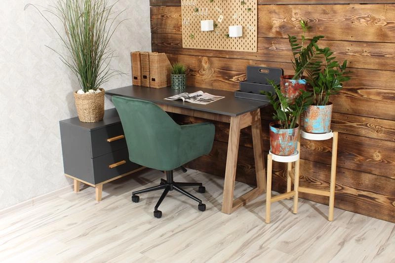 Wygodny fotel z weluru do biurka FABIO zielony z czarną podstawą