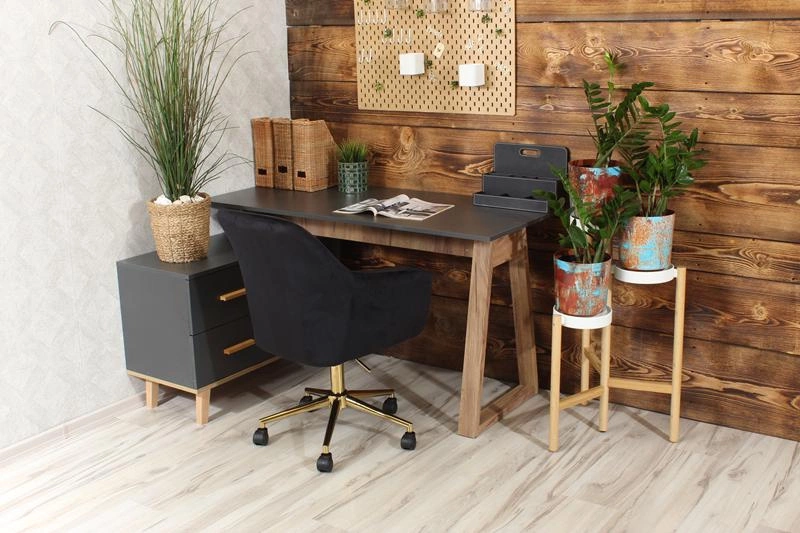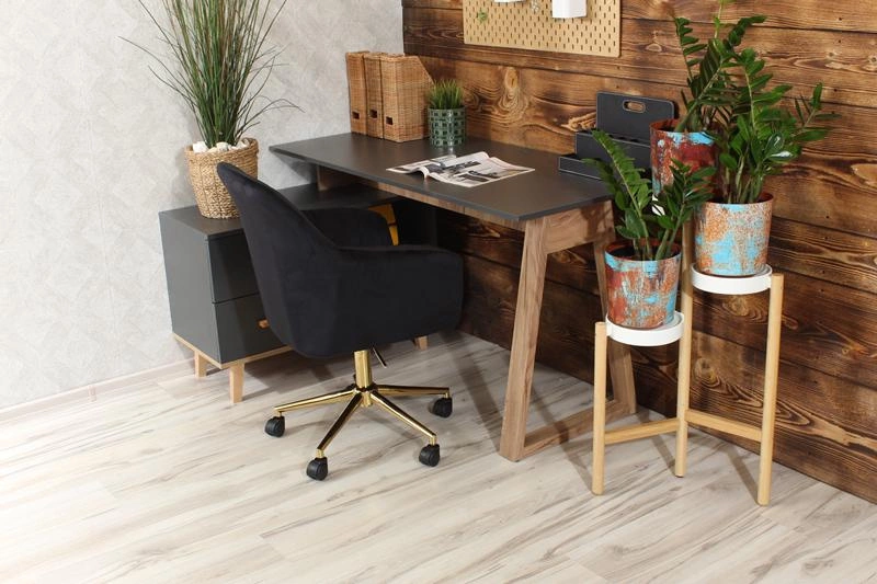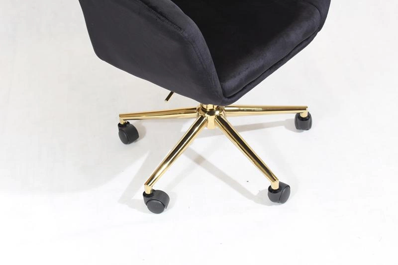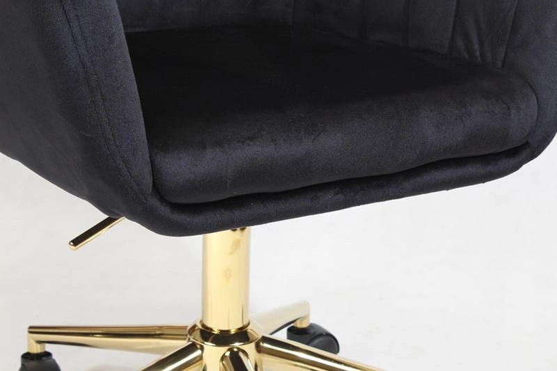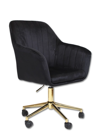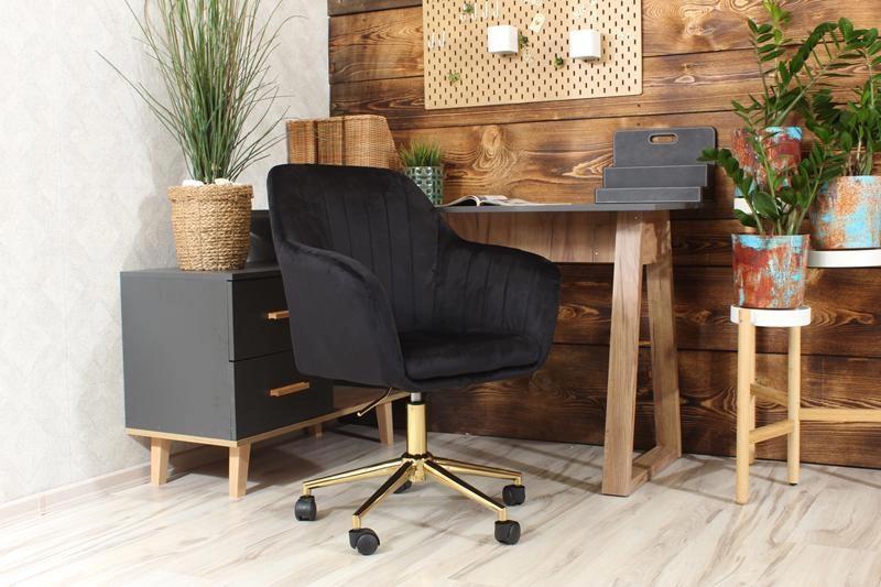 Wygodny fotel z weluru do biurka FABIO czarny ze złotą podstawą