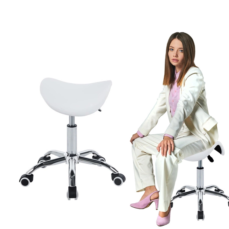 Taboret obrotowy RIDER to nowoczesny i ergonomiczny mebel, który doskonale sprawdzi się w salonach kosmetycznych, gabinetach, pracowniach oraz wszędzie tam, gdzie liczy się wygoda i mobilność. Wyprofilowane siedzisko w kształcie siodła, tapicerowane białą ekoskórą PCV, zapewnia komfortową pozycję i odciąża kręgosłup podczas dłuższej pracy. Regulacja wysokości (w zakresie 48–57 cm) pozwala łatwo dopasować taboret do indywidualnych potrzeb. Chromowana, srebrna podstawa z kółkami gwarantuje stabilność, lekkość oraz pełną swobodę ruchów. Dzięki połączeniu eleganckiego wyglądu i praktycznej konstrukcji, RIDER to niezastąpiony pomocnik w codziennej pracy – stylowy, wygodny i wytrzymały.